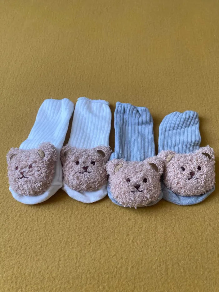 We love these cartoon bear socks! They're a hit with us and our little one, keeping their feet warm, cozy, and secure. The anti-slip soles are genius, especially for wobbly toddlers. They stay on well, unlike other socks that slip off easily. We’ve had fewer tumbles since using these. Five stars from us!
